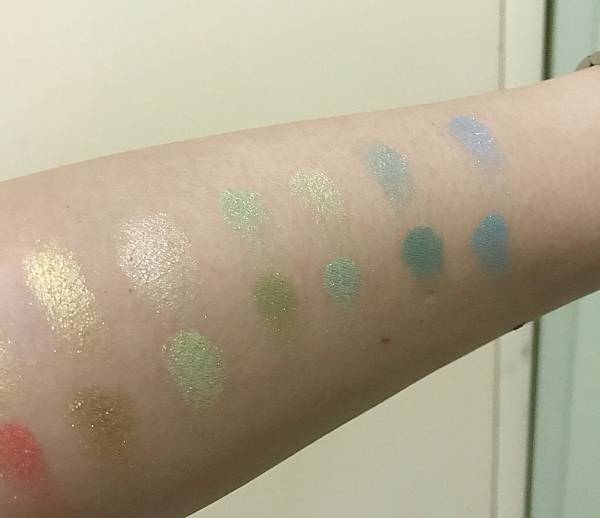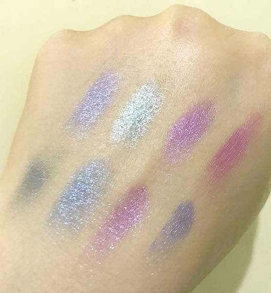 來看看實際顏色吧 這盤配色貓還滿愛的可以說是沒有廢色最多就是不用黑色跟第四排的右3 右4 小小可惜沒有很豔的桃紅跟少了一種紫色 35色都全是細緻珠光只有黑色比較霧面 帶我回巴西也有出霧面版的呦